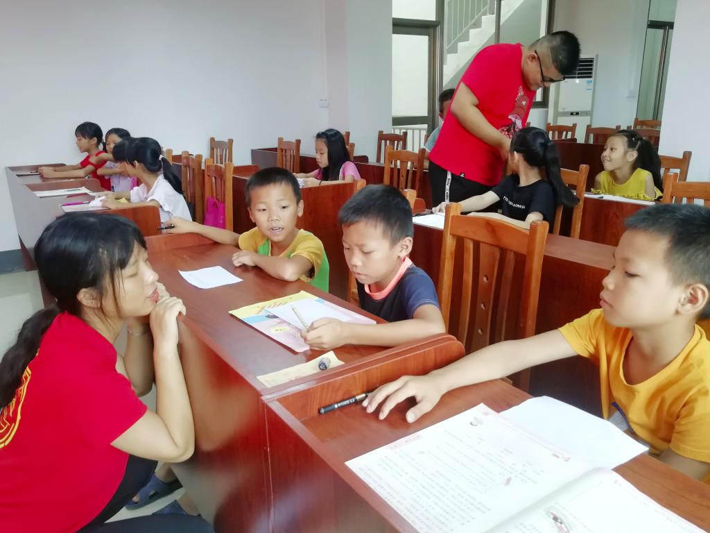 “蜻蜓青,青浮萍,青萍上面停蜻蜓,蜻蜓青萍分不清。别把蜻蜓当青萍,别把青萍当蜻蜓”志愿者们通过绕口令的形式开启了“推广普通话、文明你我他”的乐趣课堂。期间,志愿者们带领小朋友们认真朗读绕口令,为小朋友们详细讲解绕口令中的平、翘舌音,纠正发音,规范普通话。随后,志愿者们辅导孩子们的暑假作业,并听写易错字以及多音字。
